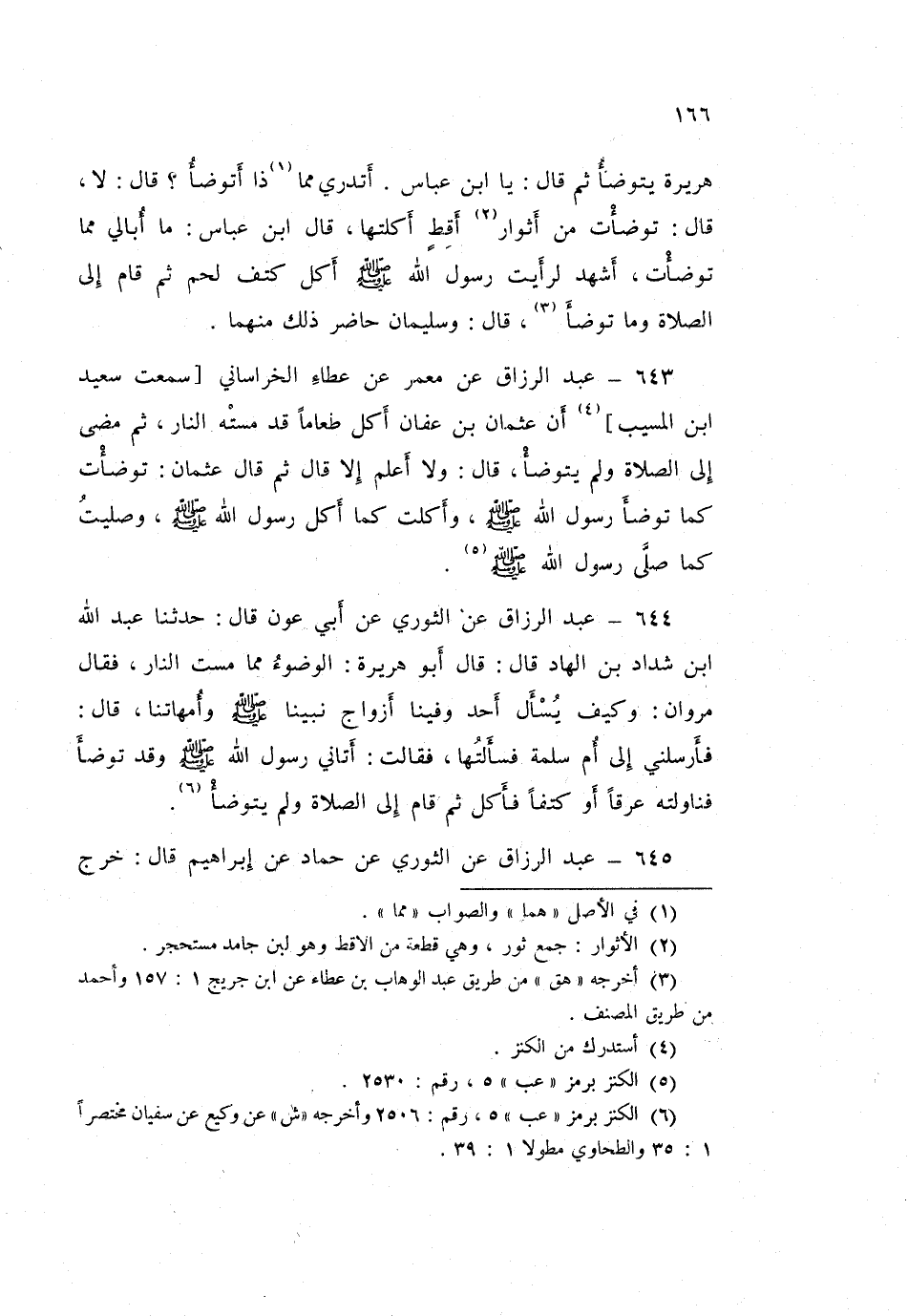 643 - عَبْدُ الرَّزَّاقِ، عَنْ مَعْمَرٍ، عَنْ عَطَاءٍ الْخُرَاسَانِيِّ، سَمِعْتُ سَعِيدَ بْنَ الْمُسَيِّبِ، أَنَّ عُثْمَانَ بْنَ عَفَّانَ، §أَكَلَ طَعَامًا قَدْ مَسَّتْهُ النَّارُ، ثُمَّ مَضَى إِلَى الصَّلَاةِ وَلَمْ يَتَوَضَّأْ قَالَ: وَلَا أَعْلَمُ إِلَّا قَالَ: ثُمَّ قَالَ عُثْمَانُ: «تَوَضَّأْتُ كَمَا تَوَضَّأَ رَسُولُ اللَّهِ صَلَّى اللهُ عَلَيْهِ وَسَلَّمَ، وَأَكَلْتُ كَمَا أَكَلَ رَسُولُ اللَّهِ صَلَّى اللهُ عَلَيْهِ وَسَلَّمَ، وَصَلَّيْتُ كَمَا صَلَّى رَسُولُ اللَّهِ صَلَّى اللهُ عَلَيْهِ وَسَلَّمَ»