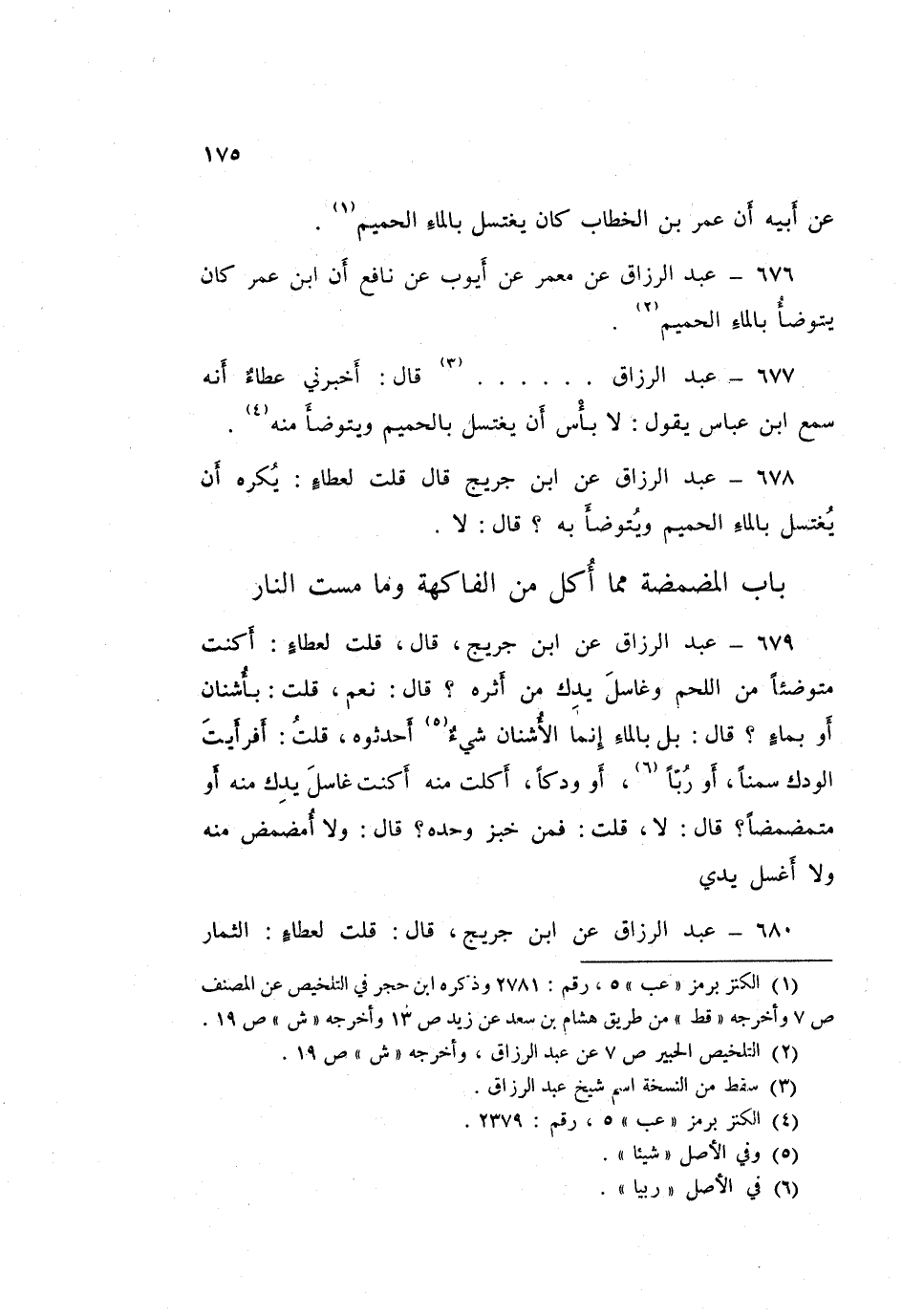 676 - عَبْدُ الرَّزَّاقِ، عَنْ مَعْمَرٍ، عَنْ أَيُّوبَ، عَنْ نَافِعٍ، أَنَّ ابْنَ عُمَرَ كَانَ §يَتَوَضَّأُ بِالْمَاءِ الْحَمِيمِ "