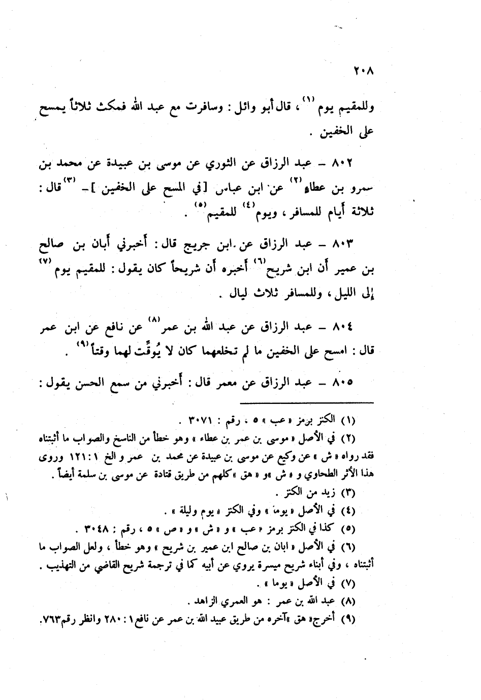 802 - عَبْدُ الرَّزَّاقِ، عَنِ الثَّوْرِيِّ، عَنْ مُوسَى بْنِ عُبَيْدَةَ، عَنْ مُحَمَّدِ بْنِ عَمْرِو بْنِ عَطَاءٍ، عَنِ ابْنِ عَبَّاسٍ فِي الْمَسْحِ عَلَى الْخُفَّيْنِ قَالَ: «§ثَلَاثَةُ أَيَّامٍ لِلْمُسَافِرِ، وَيَوْمٌ لِلْمُقِيمِ»