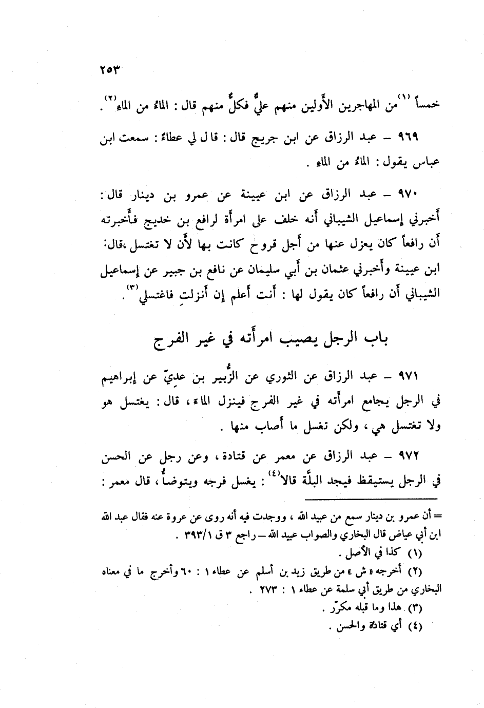 969 - عَبْدُ الرَّزَّاقِ، عَنِ ابْنِ جُرَيْجٍ قَالَ: قَالَ لِي عَطَاءٌ: سَمِعْتُ ابْنَ عَبَّاسٍ يَقُولُ: «§الْمَاءُ مِنَ الْمَاءِ»