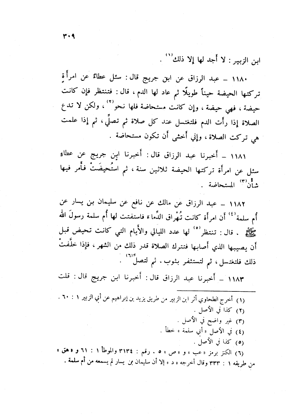 1181 - أَخْبَرَنَا عَبْدُ الرَّزَّاقِ قَالَ: أَخْبَرَنَا ابْنُ جُرَيْجٍ، عَنْ عَطَاءٍ: سُئِلَ عَنِ §امْرَأَةٍ تَرَكَتْهَا الْحَيْضَةُ ثَلَاثِينَ سَنَةً، ثُمَّ اسْتُحِيضَتْ «فَأَمَرَ فِيهَا شَأْنَ الْمُسْتَحَاضَةِ»