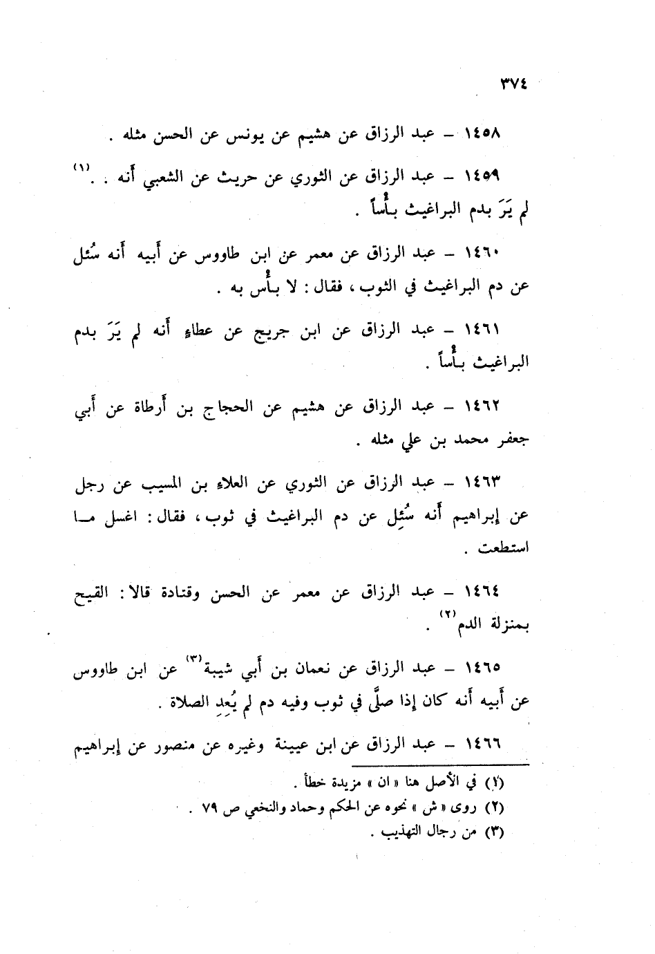 1459 - عَبْدُ الرَّزَّاقِ، عَنِ الثَّوْرِيِّ، عَنْ حُرَيْثٍ، عَنِ الشَّعْبِيِّ: «أَنَّهُ §لَمْ يَرَ بِدَمِ الْبَرَاغِيثِ بَأْسًا»