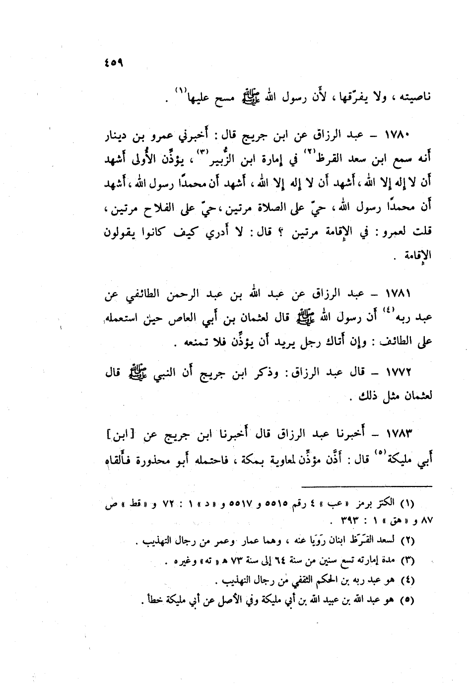 1781 - عَبْدُ الرَّزَّاقِ، عَنْ عَبْدِ اللَّهِ بْنِ عَبْدِ الرَّحْمَنِ الطَّائِفِيِّ، عَنْ عَبْدِ رَبِّهِ، أَنَّ رَسُولَ اللَّهِ صَلَّى اللهُ عَلَيْهِ وَسَلَّمَ قَالَ: لِعُثْمَانَ بْنِ أَبِي الْعَاصِ حِينَ اسْتَعْمَلَهُ عَلَى الطَّائِفِ: «§وَإِنْ أَتَاكَ رَجُلٌ يُرِيدُ أَنْ يُؤَذِّنَ فَلَا تَمْنَعْهُ»