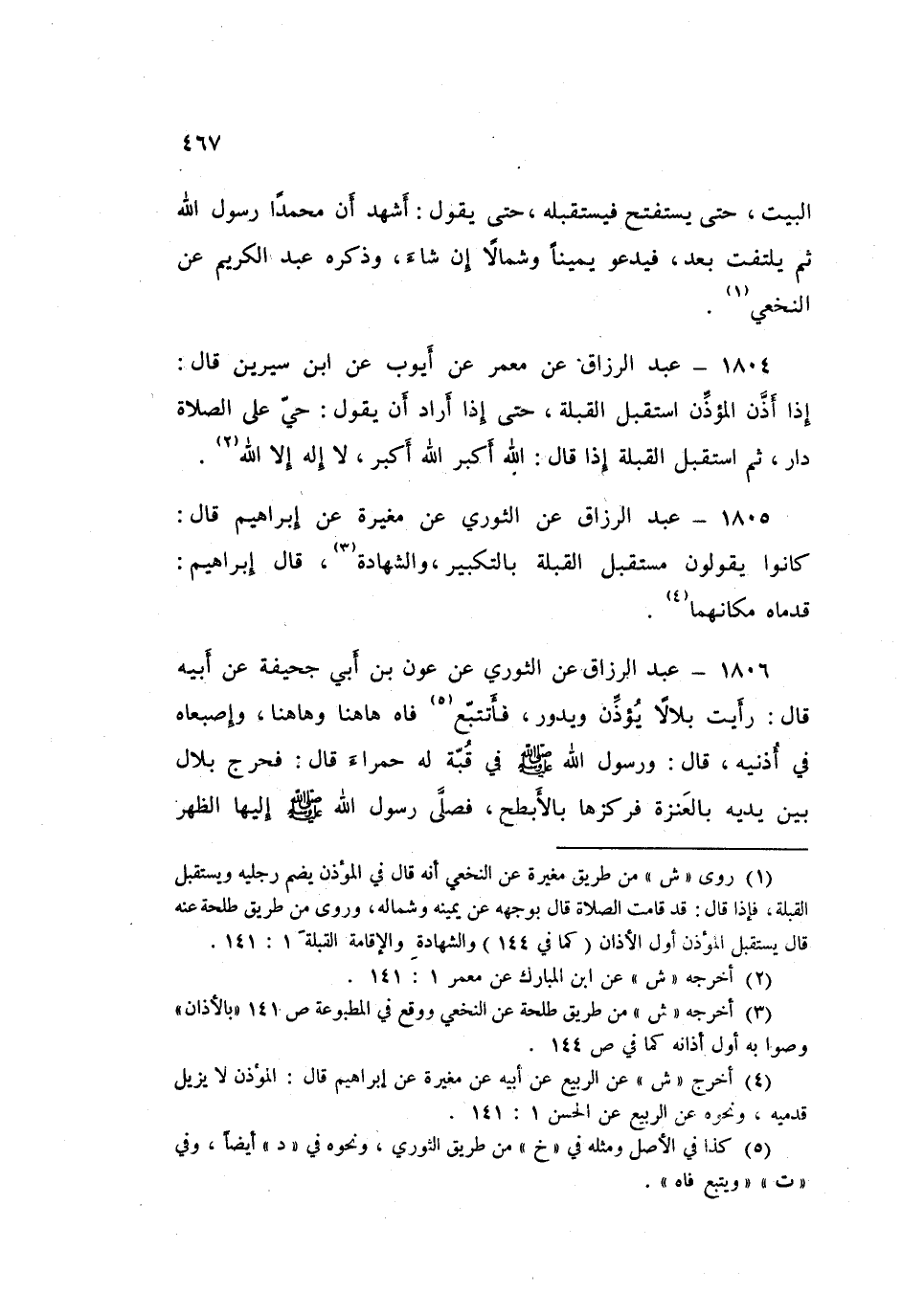 1805 - عَبْدُ الرَّزَّاقِ، عَنِ الثَّوْرِيِّ، عَنْ مُغِيرَةَ، عَنْ إِبْرَاهِيمَ قَالَ: " كَانُوا يَقُولُونَ: §مُسْتَقْبِلَ الْقِبْلَةِ بِالتَّكْبِيرِ، وَالشَّهَادَةِ ". قَالَ إِبْرَاهِيمُ: قَدَمَاهُ مَكَانَهُمَا