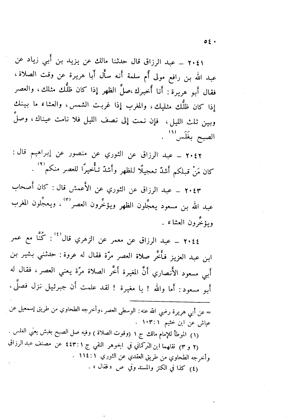 2043 - عَبْدُ الرَّزَّاقِ، عَنِ الثَّوْرِيِّ، عَنِ الْأَعْمَشِ قَالَ: «كَانَ أَصْحَابُ عَبْدِ اللَّهِ بْنِ مَسْعُودٍ §يُعَجِّلُونَ الظُّهْرَ، وَيُؤَخِّرُونَ الْعَصْرَ، وَيُعَجِّلُونَ الْمَغْرِبَ، وَيُؤَخِّرُونَ الْعِشَاءَ»