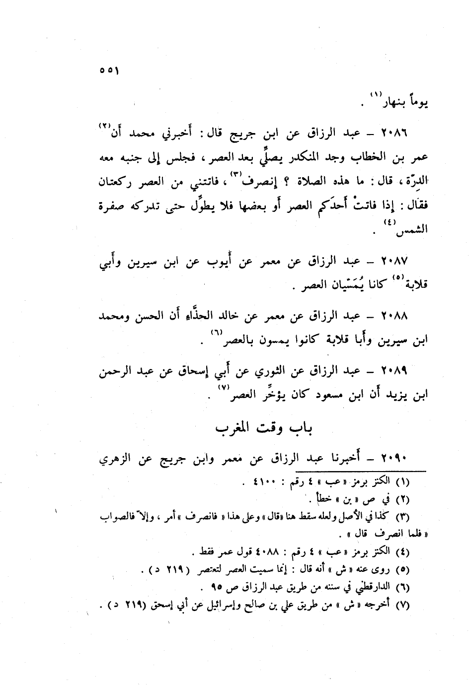 2087 - عَبْدُ الرَّزَّاقِ، عَنْ مَعْمَرٍ، عَنْ أَيُّوبَ، عَنِ ابْنِ سِيرِينَ، وَأَبِي قِلَابَةَ: «كَانَا §يُمَسِّيَانِ الْعَصْرَ»