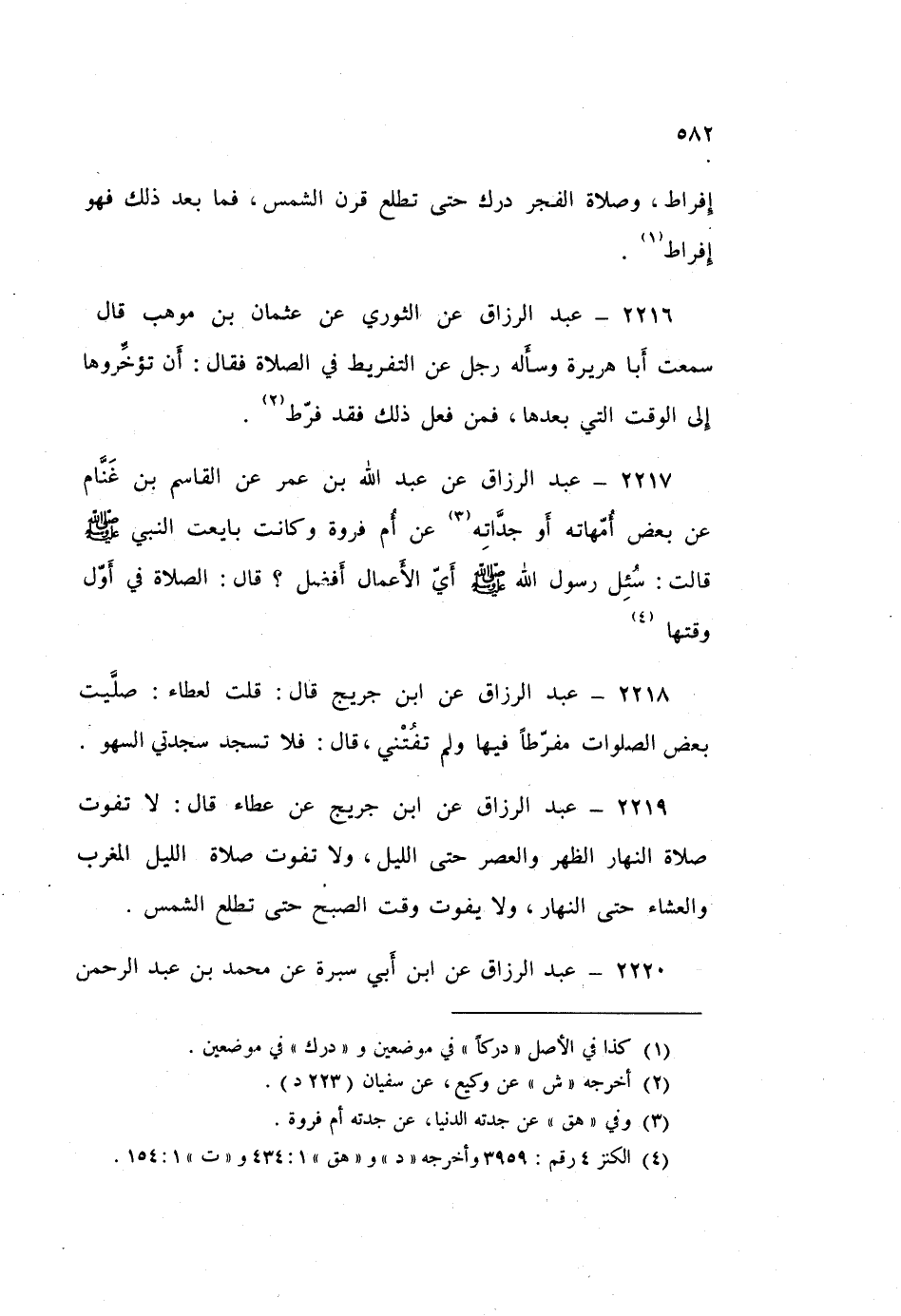 2216 - عَبْدُ الرَّزَّاقِ، عَنِ الثَّوْرِيِّ، عَنْ عُثْمَانَ بْنِ مَوْهِبٍ قَالَ: سَمِعْتُ أَبَا هُرَيْرَةَ، وَسَأَلَهُ رَجُلٌ عَنِ التَّفْرِيطِ فِي الصَّلَاةِ، فَقَالَ: «§أَنْ تُؤَخِّرُوهَا إِلَى الْوَقْتِ الَّتِي بَعْدَهَا، فَمَنْ فَعَلَ ذَلِكَ فَقَدْ فَرَّطَ»