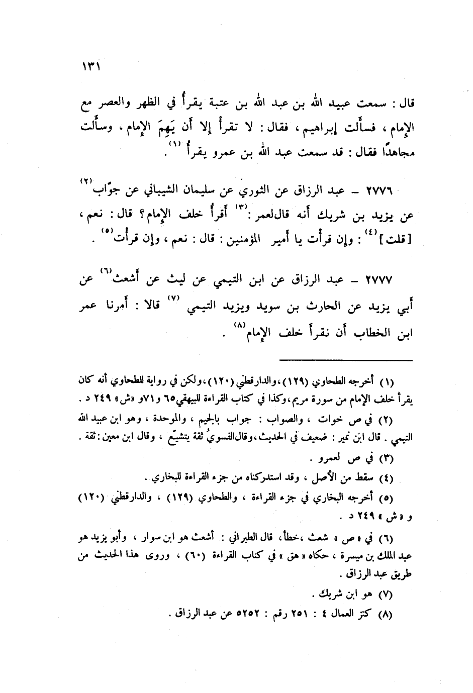 2777 - عَنِ ابْنِ التَّيْمِيِّ، عَنْ لَيْثٍ، عَنْ أَشْعَثَ، عَنْ أَبِي يَزِيدَ، عَنِ الْحَارِثِ بْنِ سُوَيْدٍ، وَيَزِيدَ التَّيْمِيِّ، قَالَا: «§أَمَرَنَا عُمَرُ بْنُ الْخَطَّابِ أَنْ نَقْرَأَ خَلْفَ الْإِمَامِ»