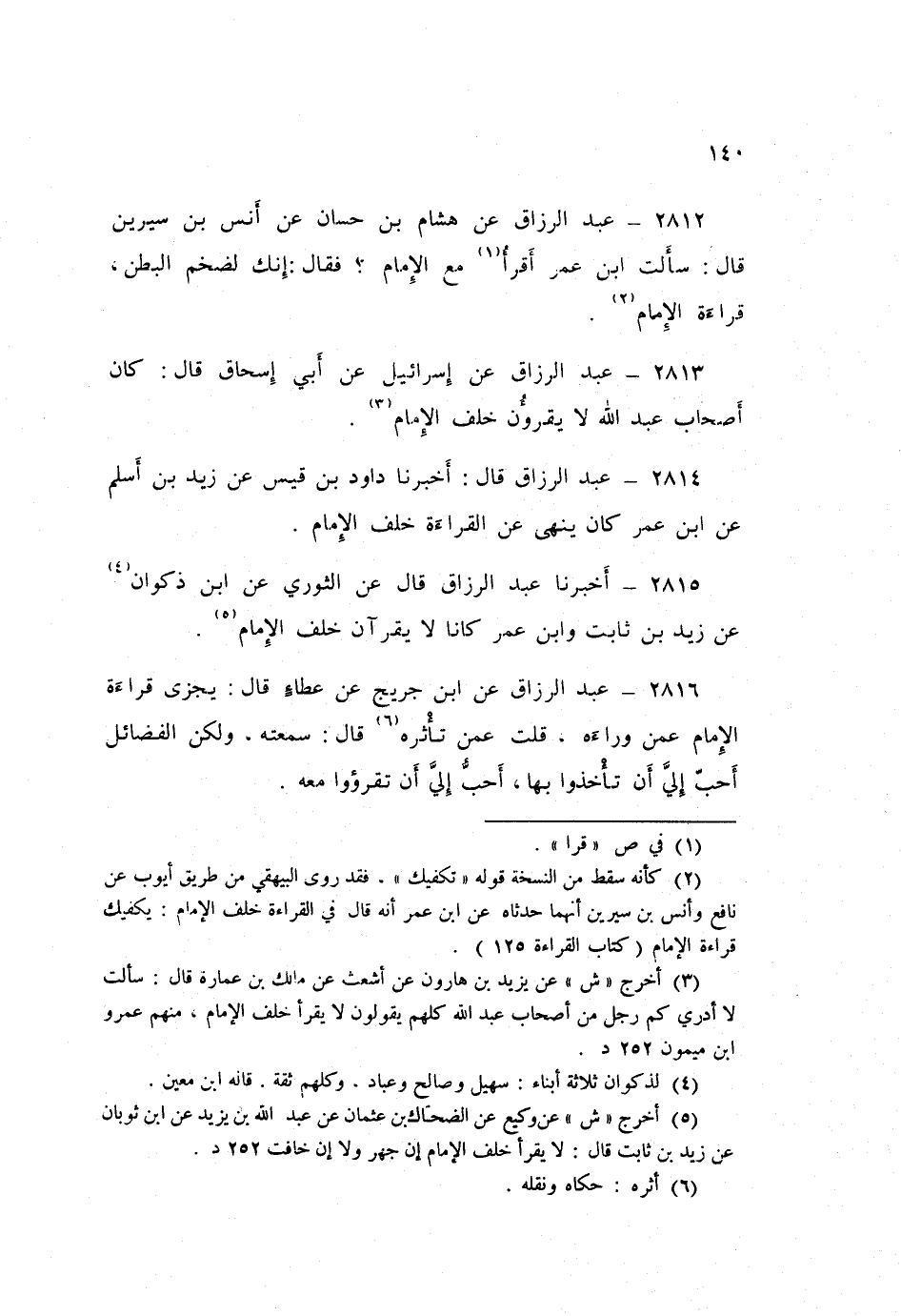 2813 - عَنْ إِسْرَائِيلَ، عَنْ أَبِي إِسْحَاقَ قَالَ: «كَانَ أَصْحَابُ عَبْدِ اللَّهِ §لَا يَقْرَؤُونَ خَلْفَ الْإِمَامِ»