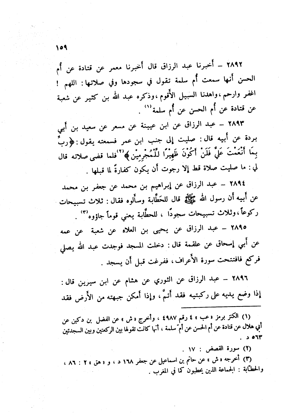 2892 - أَخْبَرَنَا عَبْدُ الرَّزَّاقِ قَالَ: أَخْبَرَنَا مَعْمَرٌ، عَنْ قَتَادَةَ، عَنْ أُمِّ الْحَسَنِ، أَنَّهَا " سَمِعَتْ أُمَّ سَلَمَةَ تَقُولُ فِي سُجُودِهَا وَفِي صَلَاتِهَا: §اللَّهُمَّ اغْفِرْ وَارْحَمْ وَاهْدِنَا السَّبِيلَ الْأَقْوَمَ " وَذَكَرَهُ عَبْدُ اللَّهِ بْنُ كَثِيرٍ، عَنْ شُعْبَةَ، عَنْ قَتَادَةَ، عَنْ أُمِّ الْحَسَنِ، عَنْ أُمِّ سَلَمَةَ