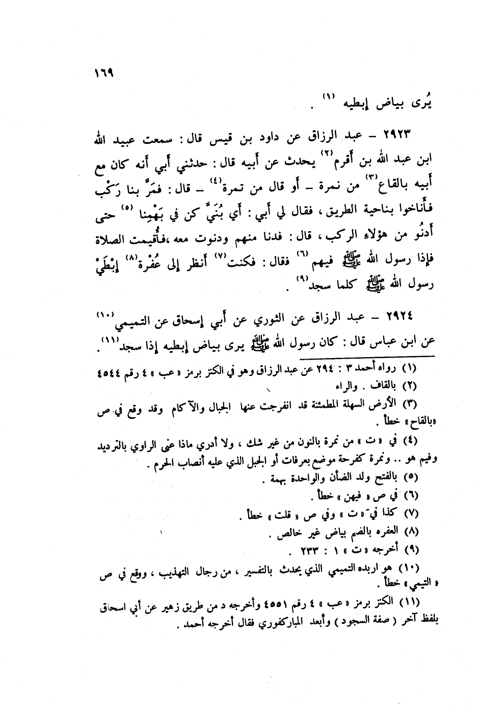 2924 - عَنِ الثَّوْرِيِّ، عَنْ أَبِي إِسْحَاقَ، عَنِ التَّمِيمِيِّ، عَنِ ابْنِ عَبَّاسٍ قَالَ: «كَانَ رَسُولُ اللَّهِ صَلَّى اللهُ عَلَيْهِ وَسَلَّمَ §يُرَى بَيَاضُ إِبْطَيْهِ إِذَا سَجَدَ»