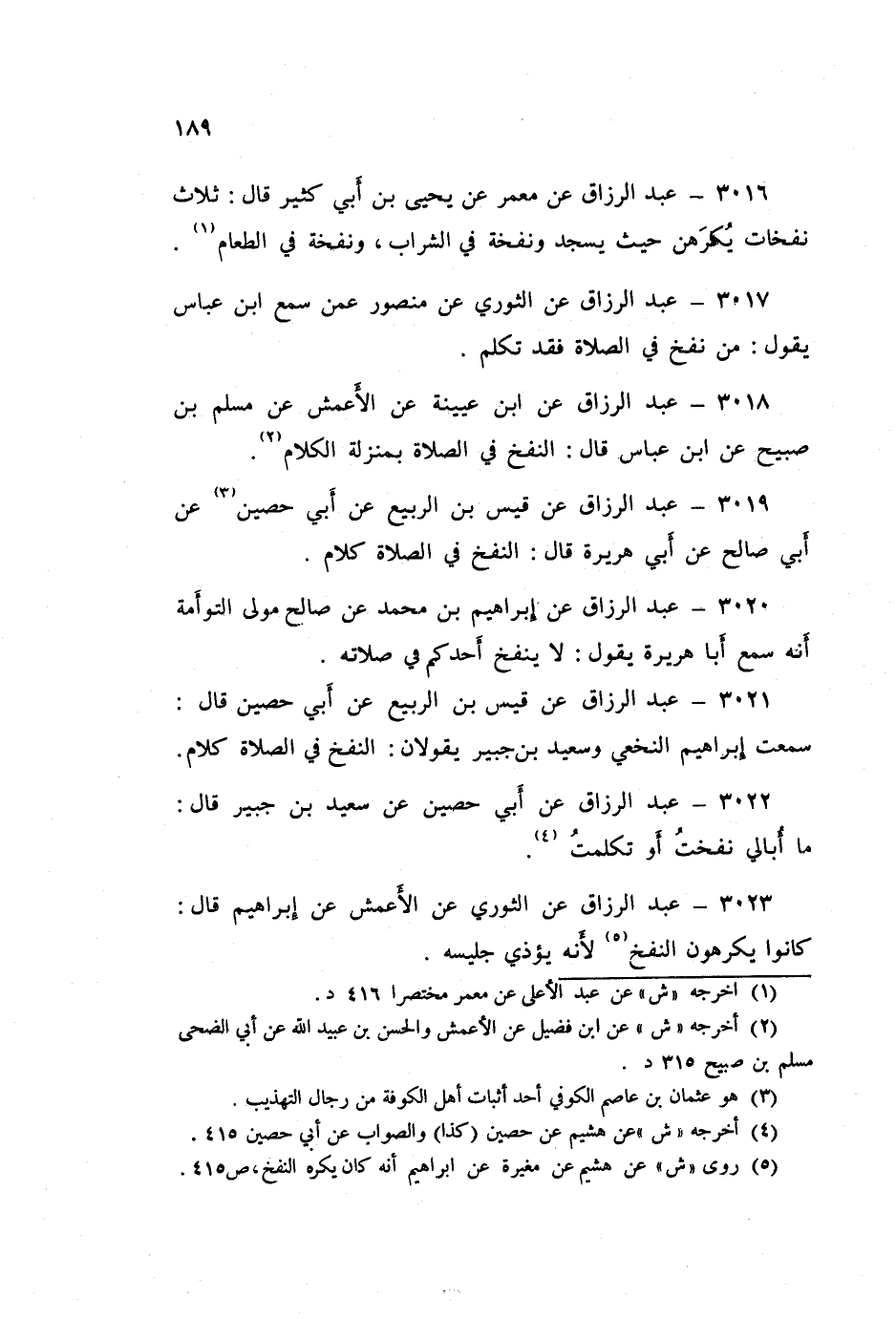 3018 - عَنِ ابْنِ عُيَيْنَةَ، عَنِ الْأَعْمَشِ، عَنْ مُسْلِمِ بْنِ صُبَيْحٍ، عَنِ ابْنِ عَبَّاسٍ قَالَ: «§النَّفْخُ فِي الصَّلَاةِ بِمَنْزِلَةِ الْكَلَامِ»