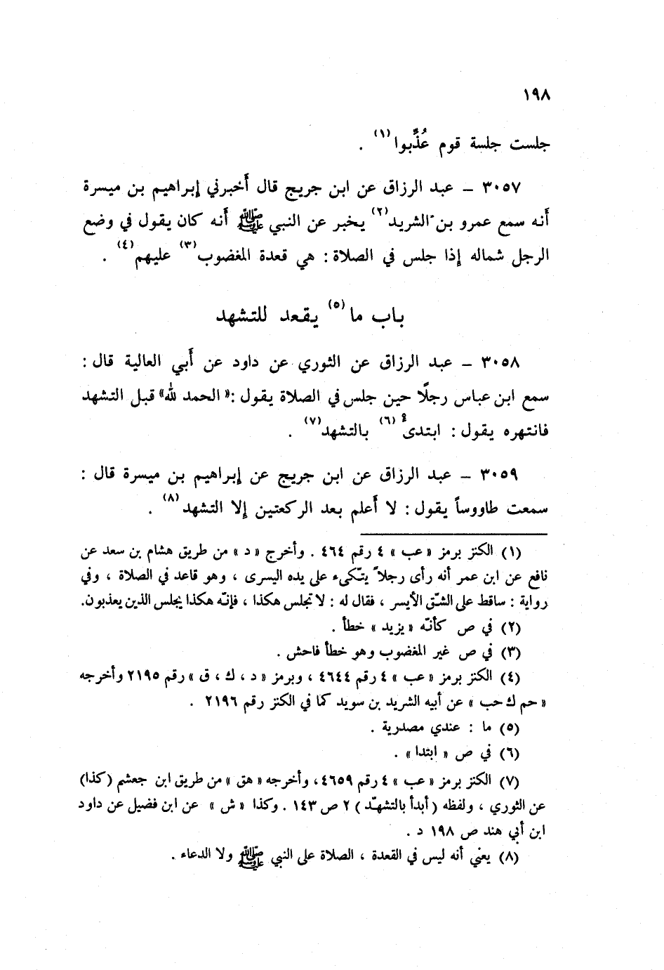3059 - عَنِ ابْنِ جُرَيْجٍ، عَنْ إِبْرَاهِيمَ بْنِ مَيْسَرَةَ قَالَ: سَمِعْتُ طَاوُسًا يَقُولُ: «§لَا أَعْلَمُ بَعْدَ الرَّكْعَتَيْنِ إِلَّا التَّشَهُّدَ»