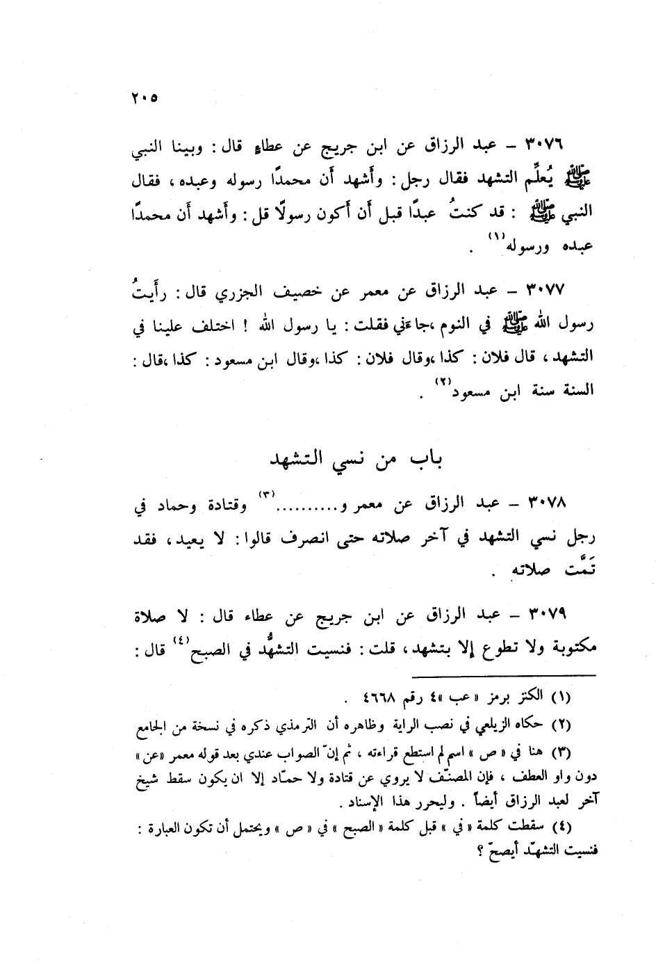 3078 - عَنْ مَعْمَرٍ، وَقَتَادَةَ، وَحَمَّادٍ فِي رَجُلٍ نَسِيَ التَّشَهُّدَ فِي آخِرِ صَلَاتِهِ حَتَّى انْصَرَفَ قَالُوا: «§لَا يُعِيدُ فَقَدْ تَمَّتْ صَلَاتُهُ»