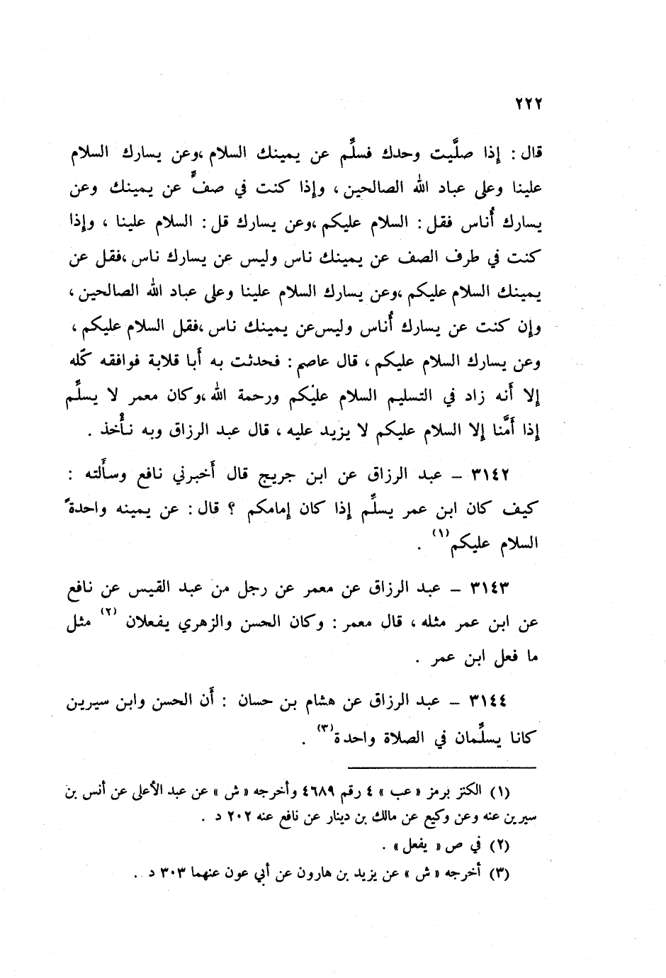 3144 - عَنْ هِشَامِ بْنِ حَسَّانَ، «أَنَّ الْحَسَنَ، وَابْنَ سِيرِينَ كَانَا §يُسَلِّمَانِ فِي الصَّلَاةِ وَاحِدَةً»