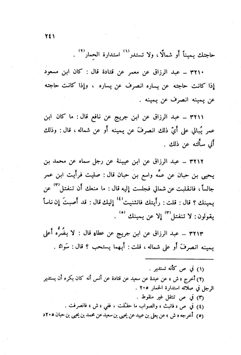 3211 - عَنِ ابْنِ جُرَيْجٍ، عَنْ نَافِعٍ قَالَ: «مَا كَانَ ابْنُ عُمَرَ يُبَالِي عَلَى أَيِّ ذَلِكَ §انْصَرَفَ عَنْ يَمِينِهِ، أَوْ عَنْ شِمَالِهِ» قَالَ: «وَذَلِكَ أَنِّي سَأَلْتُهُ عَنْ ذَلِكَ»