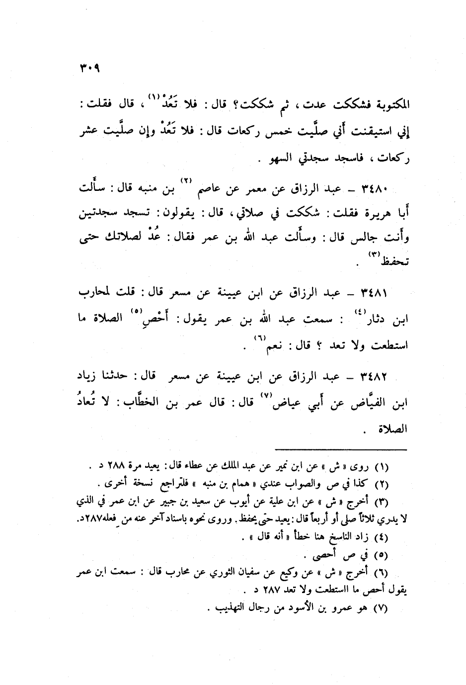 3481 - عَنِ ابْنِ عُيَيْنَةَ، عَنْ مِسْعَرَ قَالَ: قُلْتُ لِمُحَارِبِ بْنِ دِثَارٍ: سَمِعْتُ عَبْدَ اللَّهِ بْنَ عُمَرَ يَقُولُ: «§أَحْصِ الصَّلَاةَ مَا اسْتَطَعْتَ وَلَا تَعُدْ»؟ قَالَ: نَعَمْ