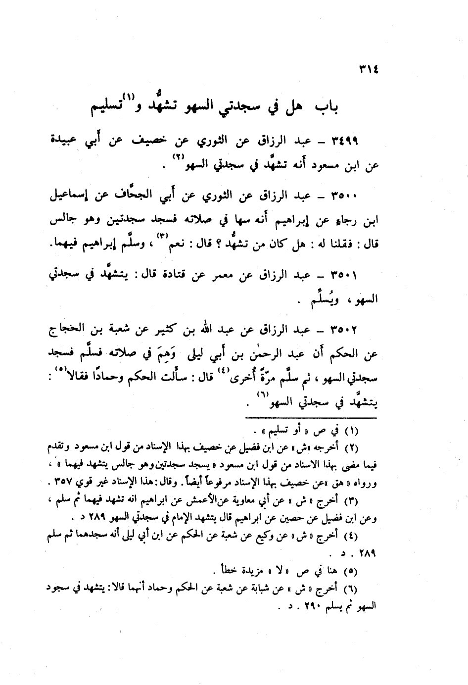 3502 - عَنْ عَبْدِ اللَّهِ بْنِ كَثِيرٍ، عَنْ شُعْبَةَ بْنِ الْحَجَّاجِ، عَنِ الْحَكَمِ «أَنَّ عَبْدَ الرَّحْمَنِ بْنِ أَبِي لَيْلَى وَهِمَ فِي صَلَاتِهِ، فَسَلَّمَ §فَسَجَدَ سَجْدَتَيِ السَّهْوِ، ثُمَّ سَلَّمَ مَرَّةً أُخْرَى» قَالَ: سَأَلْتُ الْحَكَمَ، وَحَمَّادًا فَقَالَا: «يَتَشَهَّدُ فِي سَجْدَتَيِ السَّهْوِ»