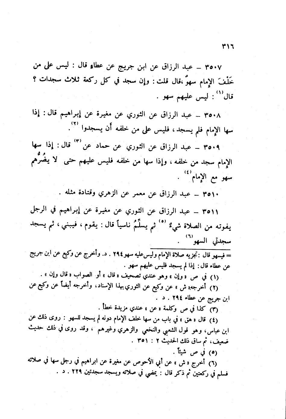 3509 - عَنِ الثَّوْرِيِّ، عَنْ حَمَّادٍ قَالَ: «§إِذَا سَهَا الْإِمَامُ سَجَدَ مَنْ خَلْفَهُ، وَإِذَا سَهَا مَنْ خَلْفَهُ فَلَيْسَ عَلَيْهِمْ حَتَّى لَا يَضُرُّهُمْ سَهْوٌ مَعَ الْإِمَامِ» عَبْدُ الرَّزَّاقِ،