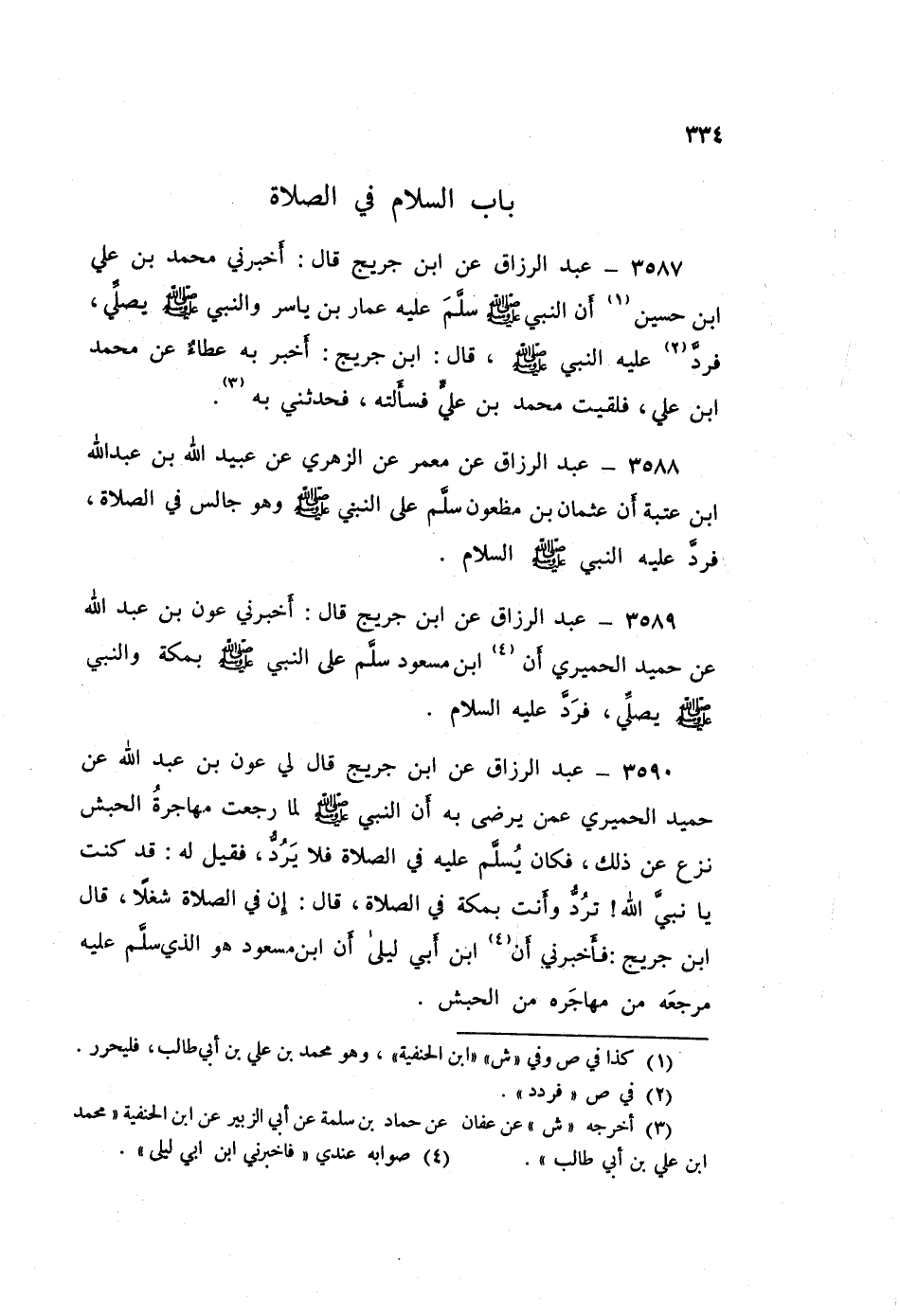 3587 - عَنِ ابْنِ جُرَيْجٍ قَالَ: أَخْبَرَنِي مُحَمَّدُ بْنُ عَلِيِّ بْنِ حُسَيْنٍ «أَنَّ النَّبِيَّ صَلَّى اللهُ عَلَيْهِ وَسَلَّمَ، §سَلَّمَ عَلَيْهِ عَمَّارُ بْنُ يَاسِرٍ وَالنَّبِيُّ صَلَّى اللهُ عَلَيْهِ وَسَلَّمَ يُصَلِّي، فَرَدَّ عَلَيْهِ النَّبِيُّ صَلَّى اللهُ عَلَيْهِ وَسَلَّمَ» قَالَ ابْنُ جُرَيْجٍ: أَخْبَرَ بِهِ عَطَاءٌ، عَنْ مُحَمَّدِ بْنِ عَلِيٍّ، فَلَقِيتُ مُحَمَّدَ بْنَ عَلِيٍّ فَسَأَلْتُهُ، فَحَدَّثَنِي بِهِ