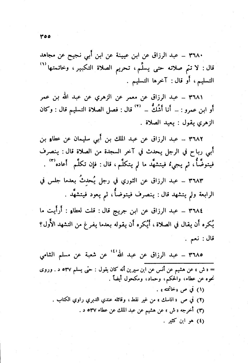 3681 - عَنْ مَعْمَرٍ، عَنِ الزُّهْرِيِّ، عَنْ عَبْدِ اللَّهِ بْنِ عُمَرَ - أَوِ ابْنِ عَمْرٍو، أَنَا أَشُكُّ - قَالَ: «§فَصْلُ الصَّلَاةِ التَّسْلِيمُ» قَالَ: وَكَانَ الزُّهْرِيُّ يَقُولُ: «يُعِيدُ الصَّلَاةَ»