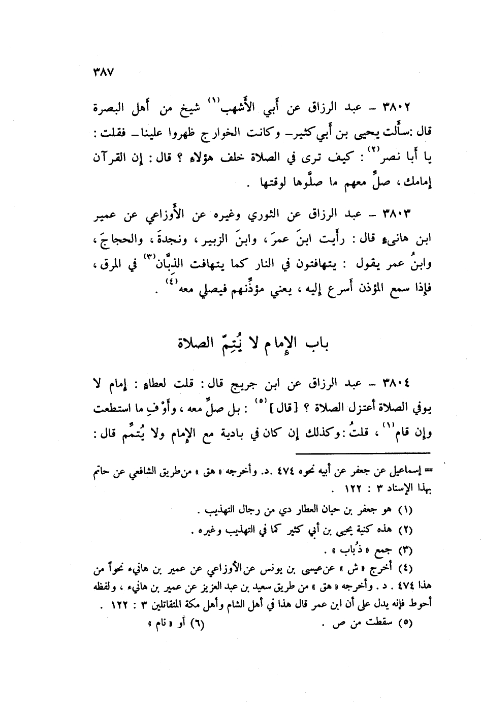 3805 - عَنْ أَبِي بَكْرِ بْنِ عَيَّاشٍ، عَنْ إِبْرَاهِيمَ، عَنِ الْأَعْمَشِ قَالَ: قُلْتُ لِعَلْقَمَةَ: إِمَامُنَا لَا يُتِمُّ الصَّلَاةَ، فَقَالَ عَلْقَمَةُ: «§لَكِنَّا نُتِمُّهَا» قَالَ: يَعْنِي نُصَلِّي مَعَهُمْ وَنُتِمُّهَا