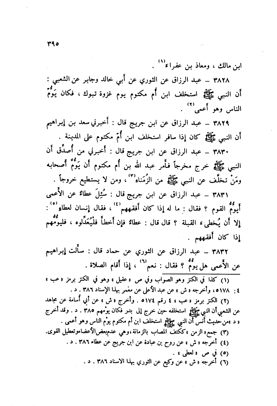 3830 - عَنِ ابْنِ جُرَيْجٍ قَالَ: أَخْبَرَنِي مَنْ أُصَدِّقُ «أَنَّ النَّبِيَّ صَلَّى اللهُ عَلَيْهِ وَسَلَّمَ خَرَجَ مَخْرَجًا، §فَأَمَرَ عَبْدَ اللَّهِ بْنَ أُمِّ مَكْتُومٍ أَنْ يَؤُمَّ أَصْحَابَهُ، وَمَنْ تَخَلَّفَ عَنِ النَّبِيِّ صَلَّى اللهُ عَلَيْهِ وَسَلَّمَ مِنَ الزُّمَنَاءِ، وَمَنْ لَا يَسْتَطِيعُ خُرُوجًا»