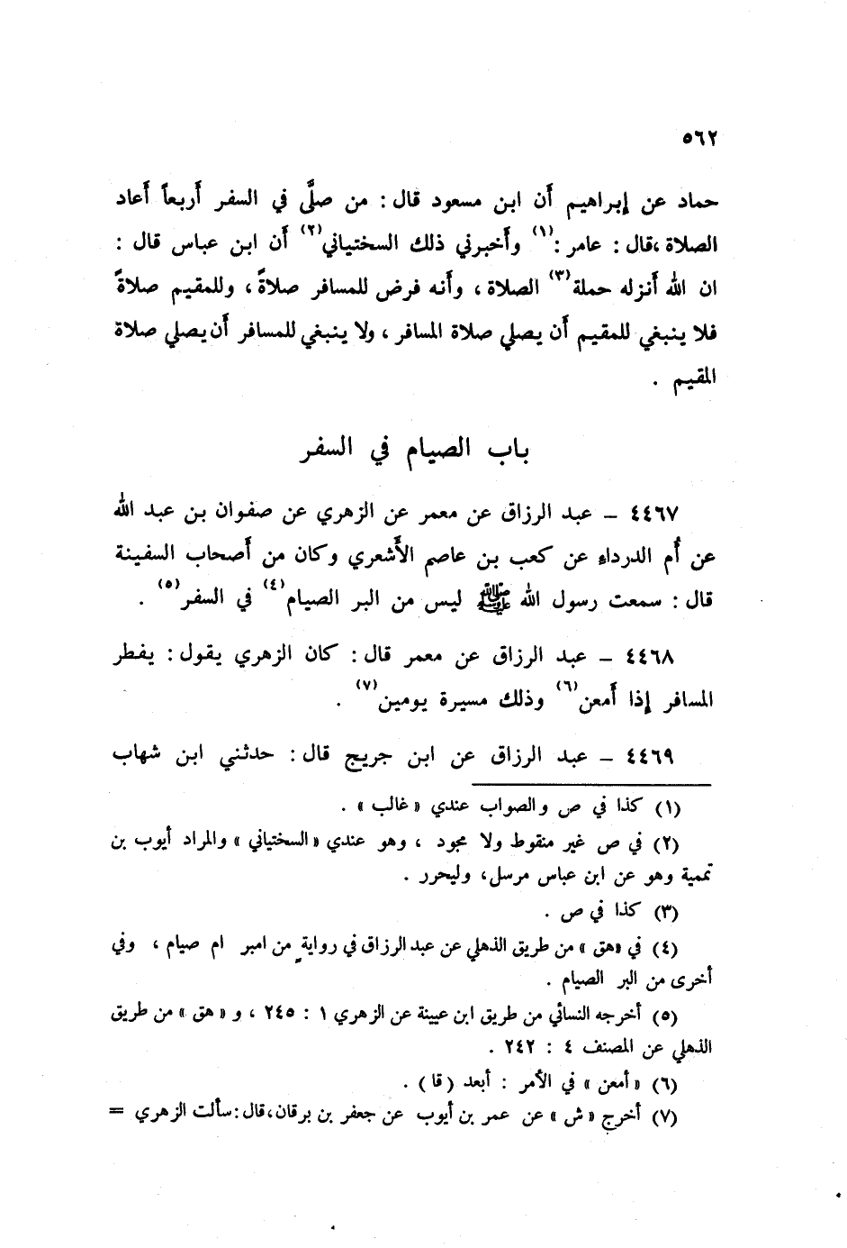 4468 - عَنْ مَعْمَرٍ قَالَ: كَانَ الزُّهْرِيُّ يَقُولُ: «§يُفْطِرُ الْمُسَافِرُ إِذَا أَمْعَنَ، وَذَلِكَ مَسِيرَةُ يَوْمَيْنِ»
