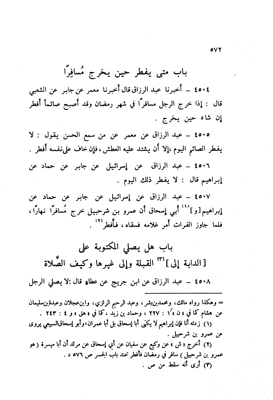 4504 - عَبْدُ الرَّزَّاقِ قَالَ: أَخْبَرَنَا مَعْمَرٌ، عَنْ جَابِرٍ، عَنِ الشَّعْبِيِّ قَالَ: «§إِذَا خَرَجَ الرَّجُلُ مُسَافِرًا فِي شَهْرِ رَمَضَانَ وَقَدْ أَصْبَحَ صَائِمًا أَفْطَرَ إِنْ شَاءَ حِينَ يَخْرُجُ»