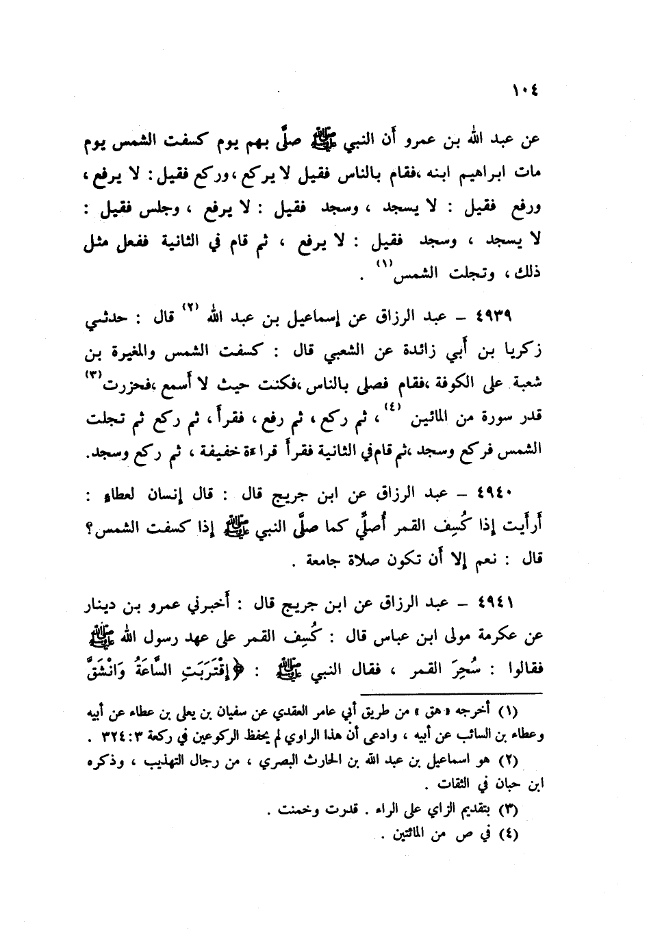 4940 - عَنِ ابْنِ جُرَيْجٍ قَالَ: قَالَ إِنْسَانٌ لِعَطَاءٍ: أَرَأَيْتَ إِذَا كَسَفَ الْقَمَرُ أُصَلِّي كَمَا صَلَّى النَّبِيُّ صَلَّى اللهُ عَلَيْهِ وَسَلَّمَ إِذَا كَسَفَتِ الشَّمْسُ قَالَ: «§نَعَمْ، إِلَّا أَنْ تَكُونَ صَلَاةٌ جَامِعَةٌ»