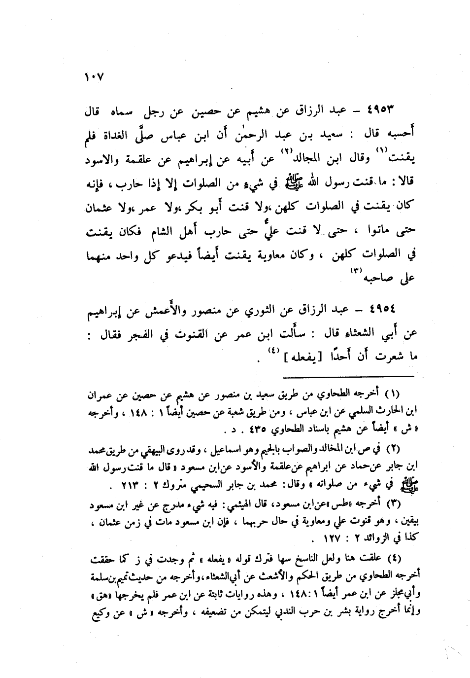 4954 - عَنِ الثَّوْرِيِّ، عَنْ مَنْصُورٍ، وَالْأَعْمَشُ، عَنْ إِبْرَاهِيمَ، عَنْ أَبِي الشَّعْثَاءِ قَالَ: سَأَلْتُ ابْنَ عُمَرَ عَنِ الْقُنُوتِ فِي الْفَجْرِ، فَقَالَ: «§مَا شَعُرْتُ أَنَّ أَحَدًا يَفْعَلُهُ»