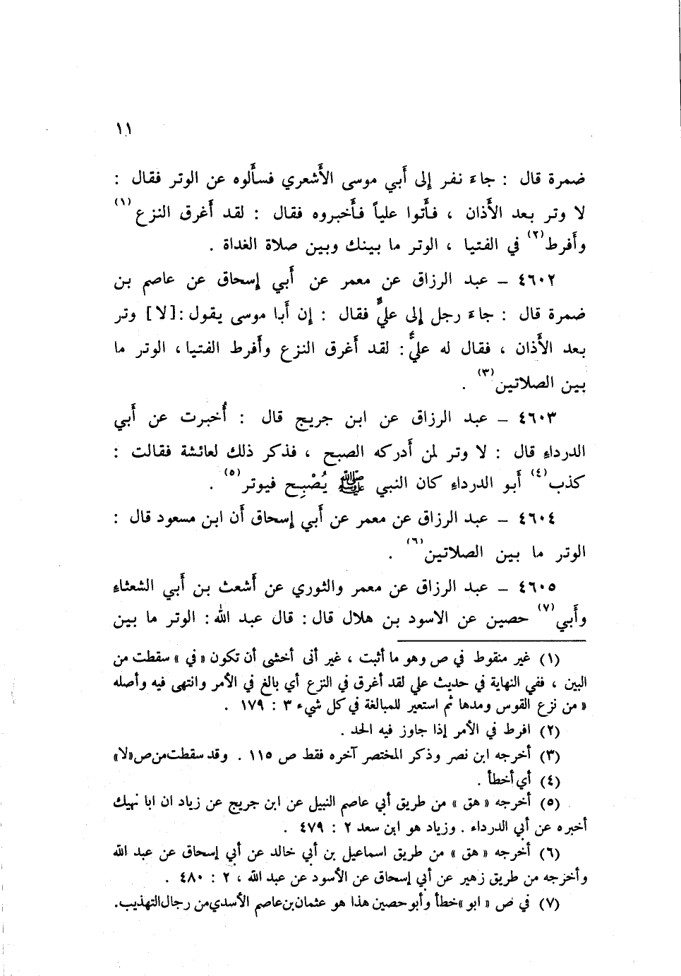 4604 - عَنْ مَعْمَرٍ، عَنْ أَبِي إِسْحَاقَ، أَنَّ ابْنَ مَسْعُودٍ قَالَ: «§الْوِتْرُ مَا بَيْنَ الصَّلَاتَيْنِ»