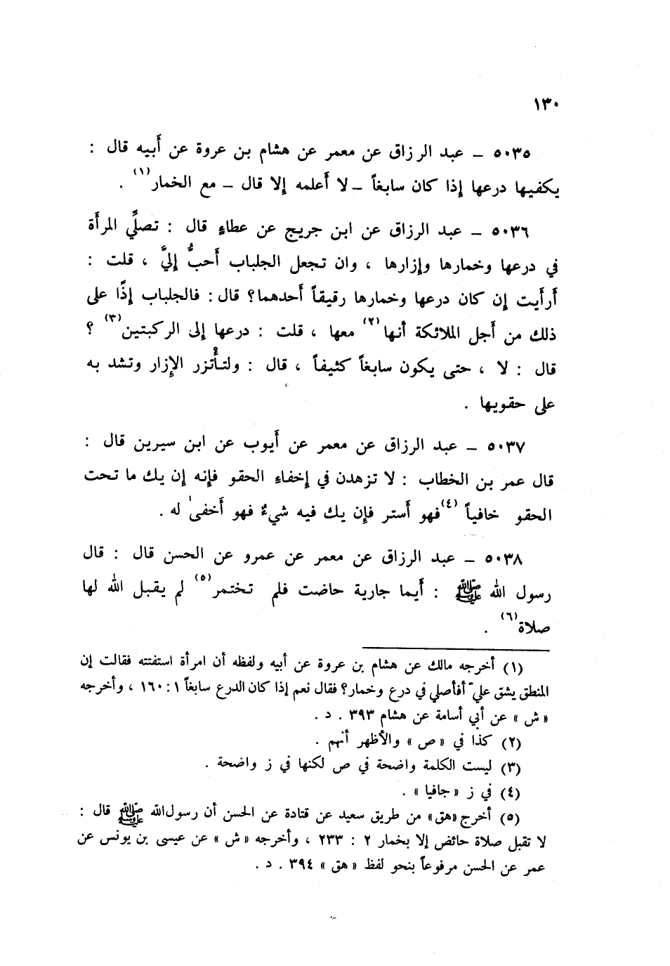 5038 - عَنْ مَعْمَرٍ، عَنْ عَمْرٍو، عَنِ الْحَسَنِ قَالَ: قَالَ رَسُولُ اللَّهِ صَلَّى اللهُ عَلَيْهِ وَسَلَّمَ: «§أَيُّمَا جَارِيَةٍ حَاضَتْ فَلَمْ تَخْتَمِرْ لَمْ يَقْبَلِ اللَّهُ لَهَا صَلَاةً»