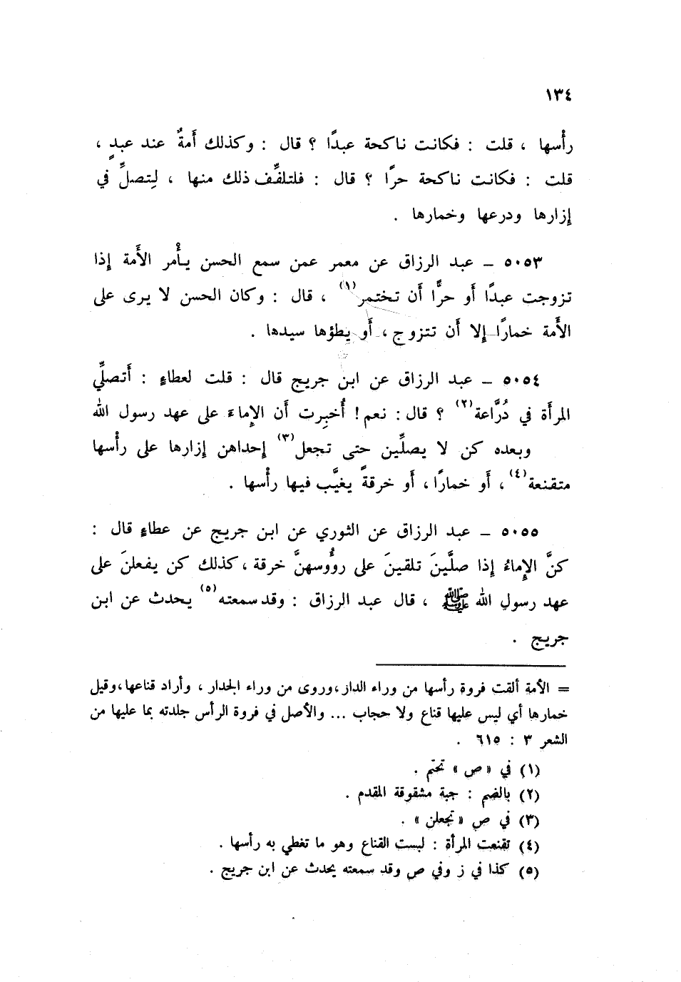 5055 - عَنِ الثَّوْرِيِّ، عَنِ ابْنِ جُرَيْجٍ، عَنْ عَطَاءٍ قَالَ: «§كُنَّ الْإِمَاءُ إِذَا صَلَّيْنَ تُلْقِينَ عَلَى رُءُوسِهِنَّ خِرْقَةً، كَذَلِكَ كُنَّ يَفْعَلْنَ عَلَى عَهْدِ رَسُولِ اللَّهِ صَلَّى اللهُ عَلَيْهِ وَسَلَّمَ» قَالَ عَبْدُ الرَّزَّاقِ: وَقَدْ سَمِعْتُهُ يُحَدِّثُ، عَنِ ابْنِ جُرَيْجٍ