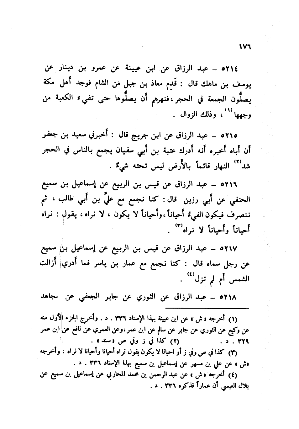 5216 - عَنْ قَيْسِ بْنِ الرَّبِيعِ، عَنْ إِسْمَاعِيلَ بْنِ سُمَيْعٍ الْحَنَفِيِّ، عَنْ أَبِي رَزِينٍ قَالَ: " §كُنَّا نُجَمِّعُ مَعَ عَلِيِّ بْنِ أَبِي طَالِبٍ، ثُمَّ نَنْصَرِفُ فَيَكُونُ الْفَيْءُ أَحْيَانًا، وَأَحْيَانًا لَا يَكُونُ لَا نَرَاهُ يَقُولُ: نَرَاهُ أَحْيَانًا، وَأَحْيَانًا لَا نَرَاهُ "
