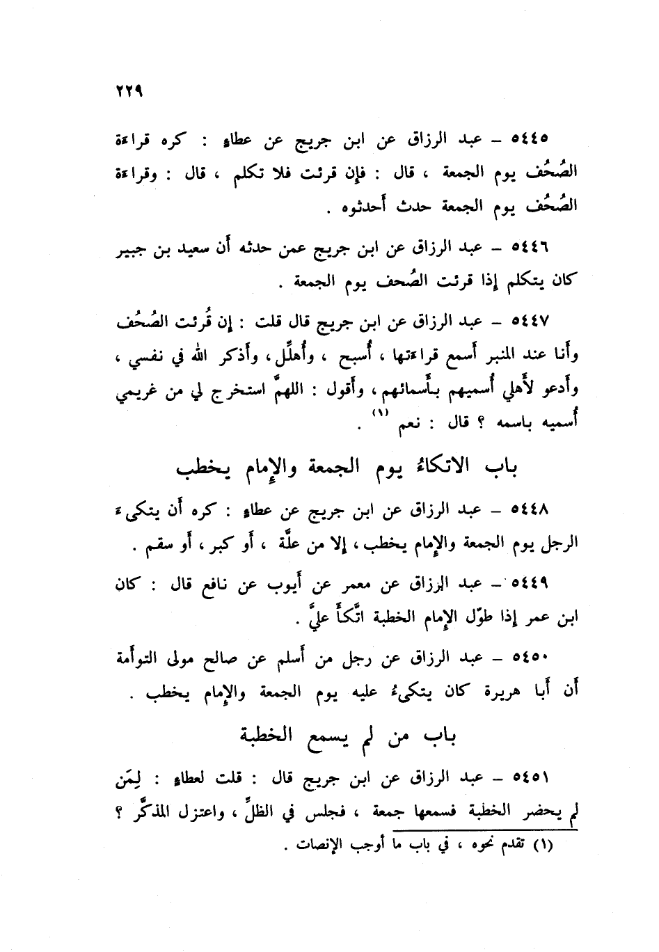5446 - عَنِ ابْنِ جُرَيْجٍ، عَمَّنْ حَدَّثَهُ أَنَّ سَعِيدَ بْنَ جُبَيْرٍ «كَانَ §يَتَكَلَّمُ إِذَا قُرِئَتِ الصُّحُفُ يَوْمَ الْجُمُعَةِ»