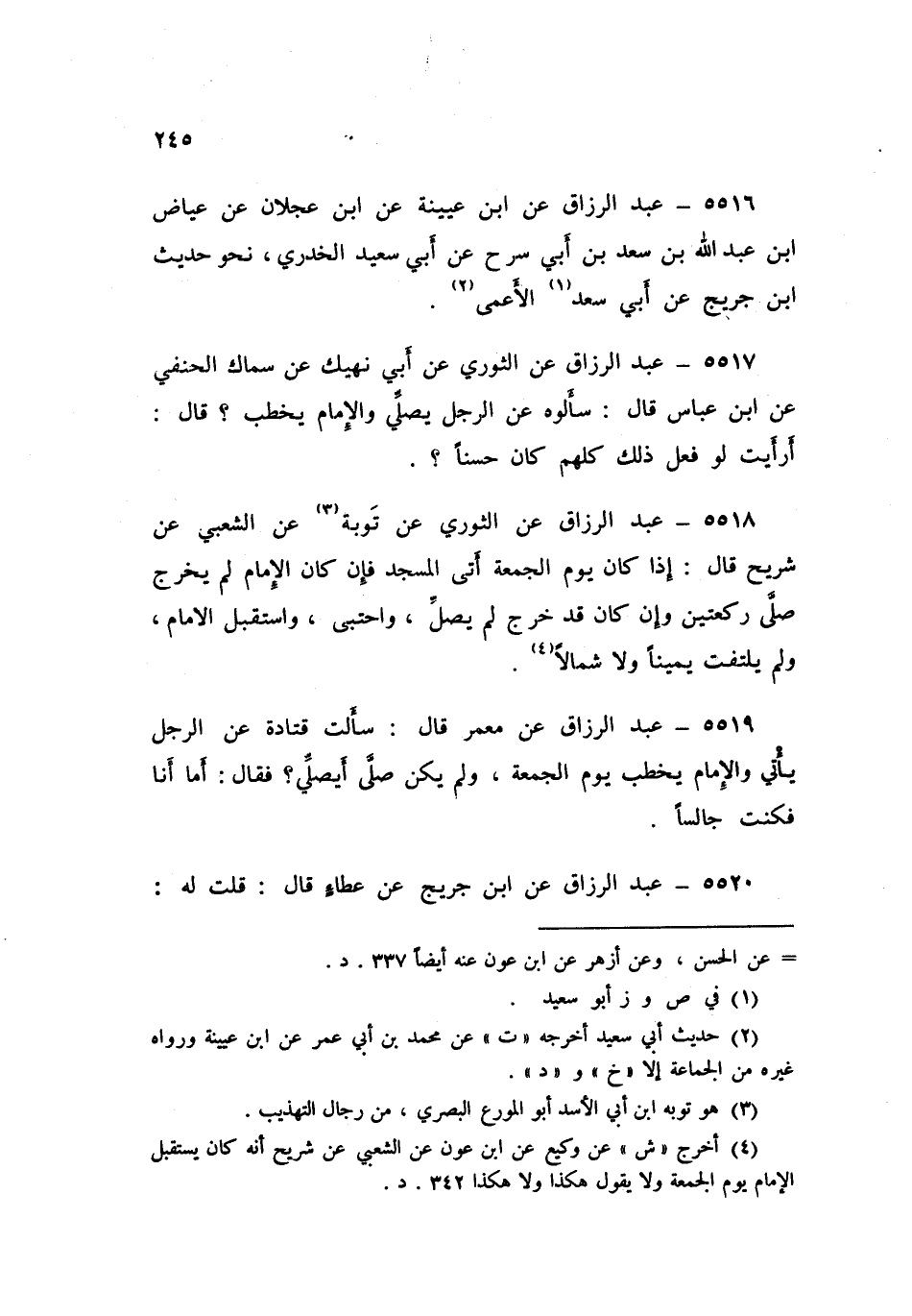 5520 - عَنِ ابْنِ جُرَيْجٍ، عَنْ عَطَاءٍ قَالَ: قُلْتُ لَهُ: §جِئْتَ وَالْإِمَامُ يَخْطُبُ يَوْمَ الْجُمُعَةِ أَتَرْكَعُ؟ قَالَ: «أَمَّا وَالْإِمَامُ يَخْطُبُ فَلَمْ أَكُنْ لِأَرْكَعَ»