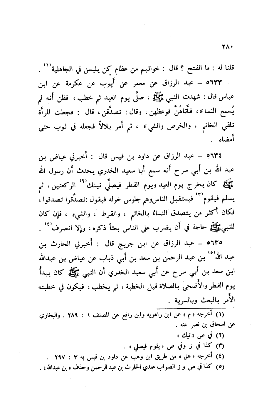 5635 - عَنِ ابْنِ جُرَيْجٍ قَالَ: أَخْبَرَنِي الْحَارِثُ بْنُ عَبْدِ اللَّهِ بْنِ عَبْدِ الرَّحْمَنِ بْنِ سَعْدِ بْنِ أَبِي ذُبَابٍ، عَنْ عِيَاضِ بْنِ عَبْدِ اللَّهِ بْنِ سَعْدِ بْنِ أَبِي سَرْحٍ، عَنْ أَبِي سَعِيدٍ الْخُدْرِيِّ أَنَّ النَّبِيَّ صَلَّى اللهُ عَلَيْهِ وَسَلَّمَ كَانَ §يَبْدَأُ يَوْمَ الْفِطْرِ وَالْأَضْحَى بِالصَّلَاةِ قَبْلَ الْخُطْبَةِ، ثُمَّ يَخْطُبُ فَيَكُونُ فِي خُطْبَتِهِ الْأَمْرُ بِالْبَعْثِ وَبِالسَّرِيَّةِ "
