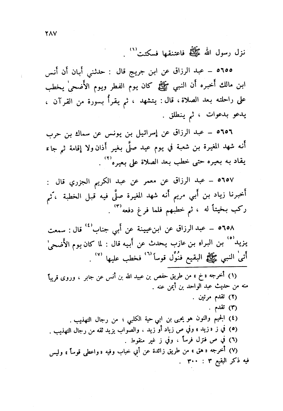 5657 - عَنْ مَعْمَرٍ، عَنْ عَبْدِ الْكَرِيمِ الْجَزْرِيِّ قَالَ: أَخْبَرَنَا زِيَادُ بْنُ أَبِي مَرْيَمَ، أَنَّهُ شَهِدَ الْمُغِيرَةَ «§صَلَّى فِيهِ قَبْلَ الْخُطْبَةِ، ثُمَّ رَكِبَ بُخَيْتًا لَهُ، ثُمَّ خَطَبَهُمْ، فَلَمَّا فَرَغَ دَفَعَهُ»