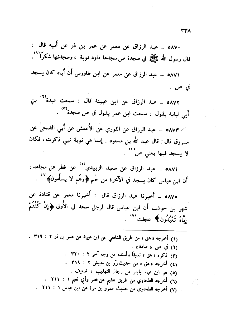 5871 - عَنْ مَعْمَرٍ، عَنِ ابْنِ طَاوُسٍ، أَنَّ أَبَاهُ «كَانَ §يَسْجُدُ فِي ص»