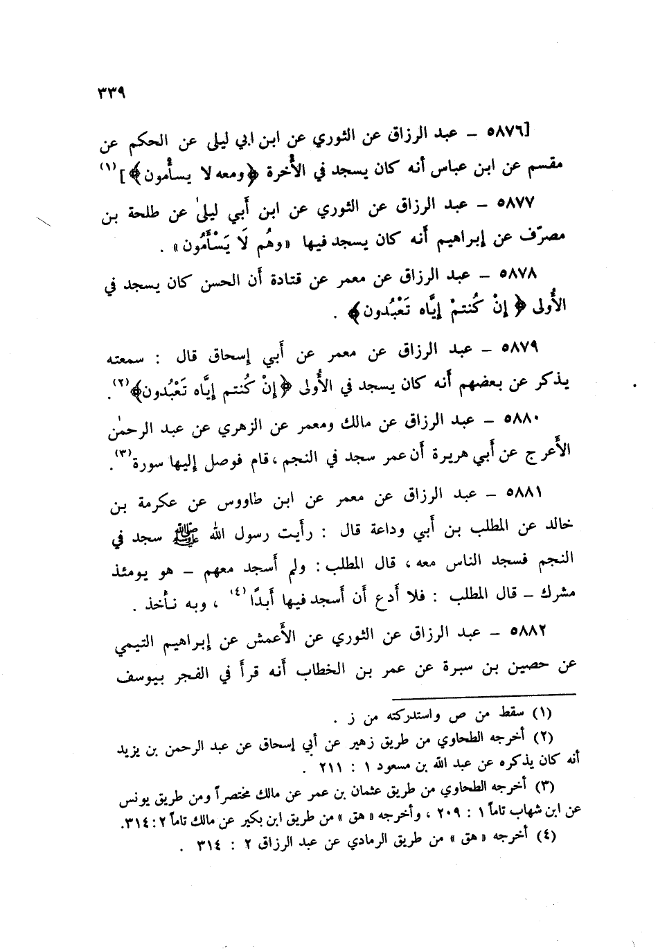 5879 - عَنْ مَعْمَرٍ، عَنْ أَبِي إِسْحَاقَ قَالَ: سَمِعْتُهُ يَذْكُرُ عَنْ بَعْضِهِمْ " أَنَّهُ كَانَ §يَسْجُدُ فِي الْأُولَى {إِنْ كُنْتُمْ إِيَّاهُ تَعْبُدُونَ} [البقرة: 172] "