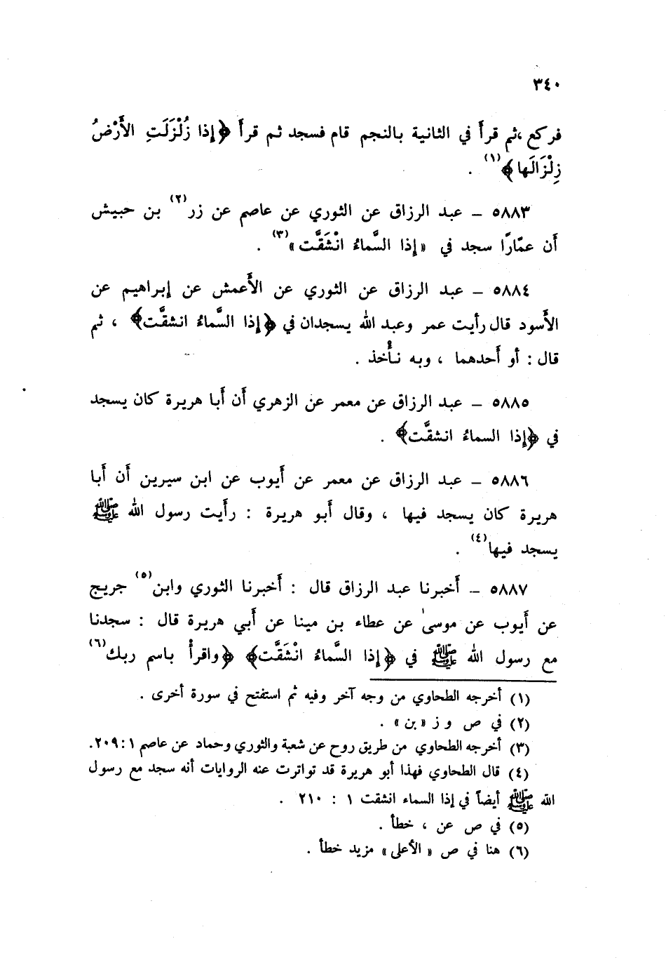 5885 - عَنْ مَعْمَرٍ، عَنِ الزُّهْرِيِّ، أَنَّ أَبَا هُرَيْرَةَ كَانَ §يَسْجُدُ فِي إِذَا السَّمَاءُ انْشَقَّتْ "