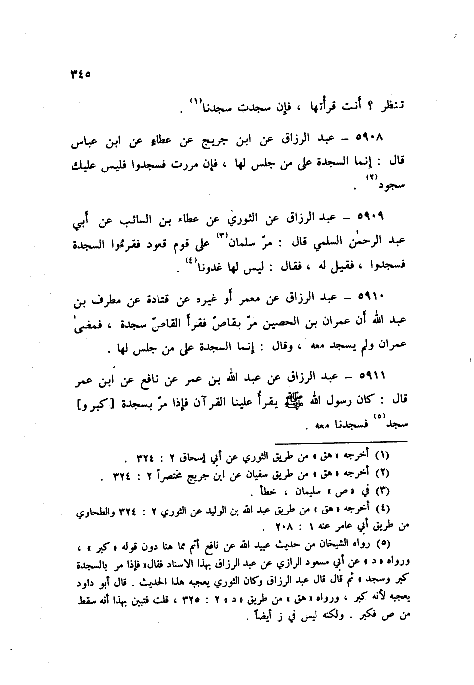 5909 - عَنِ الثَّوْرِيِّ، عَنْ عَطَاءِ بْنِ السَّائِبِ، عَنْ أَبِي عَبْدِ الرَّحْمَنِ السُّلَمِيِّ قَالَ: مَرَّ سَلْمَانُ عَلَى قَوْمٍ قُعُودٍ فَقَرَءُوا السَّجْدَةَ فَسَجَدُوا، فَقِيلَ لَهُ فَقَالَ: «§لَيْسَ لَهَا غَدَوْنَا»