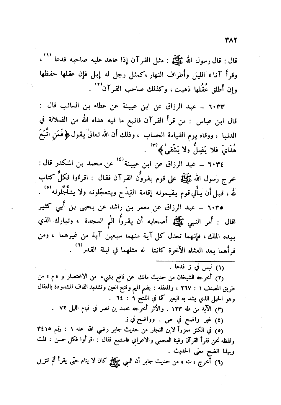 6034 - عَنِ ابْنِ عُيَيْنَةَ، عَنْ مُحَمَّدِ بْنِ الْمُنْكَدِرِ قَالَ: خَرَجَ رَسُولُ اللَّهِ صَلَّى اللهُ عَلَيْهِ وَسَلَّمَ عَلَى قَوْمٍ يَقْرَءُونَ الْقُرْآنَ فَقَالَ: «§اقْرَءُوا فَكُلُّ كِتَابٍ لِلَّهِ، قَبْلَ أَنْ يَأْتِيَ قَوْمٌ يُقِيمُونَهُ إِقَامَةَ الْقِدْحِ، وَيَتَعَّجَّلُونَهُ وَلَا يَتَأَجَّلُونَهُ»