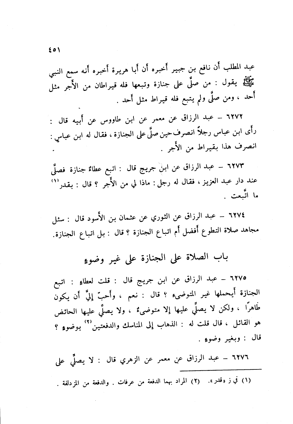 6273 - عَنِ ابْنِ جُرَيْجٍ قَالَ: اتَّبَعَ عَطَاءٌ جِنَازَةَ فَصَلَّى عِنْدَ دَارِ عَبْدِ الْعَزِيزِ، فَقَالَ لَهُ رَجُلٌ: مَاذَا لِي مِنَ الْأَجْرِ قَالَ: «§بِقَدْرِ مَا اتَّبَعْتَ»
