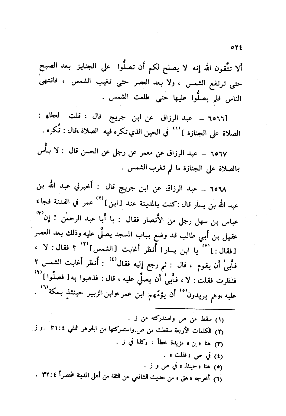 6567 - عَنْ مَعْمَرٍ، عَنْ رَجُلٍ، عَنِ الْحَسَنِ قَالَ: «§لَا بَأْسَ بِالصَّلَاةِ عَلَى الْجِنَازَةِ مَا لَمْ تَغْرُبِ الشَّمْسُ»