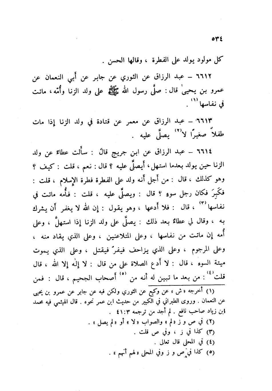 6613 - عَنْ مَعْمَرٍ، عَنْ قَتَادَةَ فِي وَلَدِ الزِّنَا «§إِذَا مَاتَ طِفْلًا صَغِيرًا لَا يُصَلَّى عَلَيْهِ»