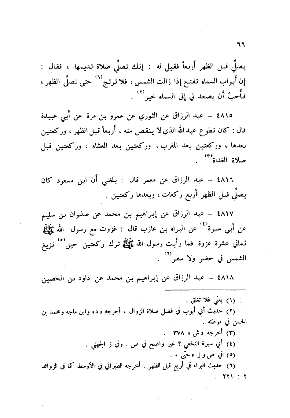 4816 - عَنْ مَعْمَرٍ قَالَ: «بَلَغَنِي أَنَّ ابْنَ مَسْعُودٍ، كَانَ §يُصَلِّي قَبْلَ الظُّهْرِ أَرْبَعَ رَكَعَاتٍ وَبَعْدَهَا رَكْعَتَيْنِ»