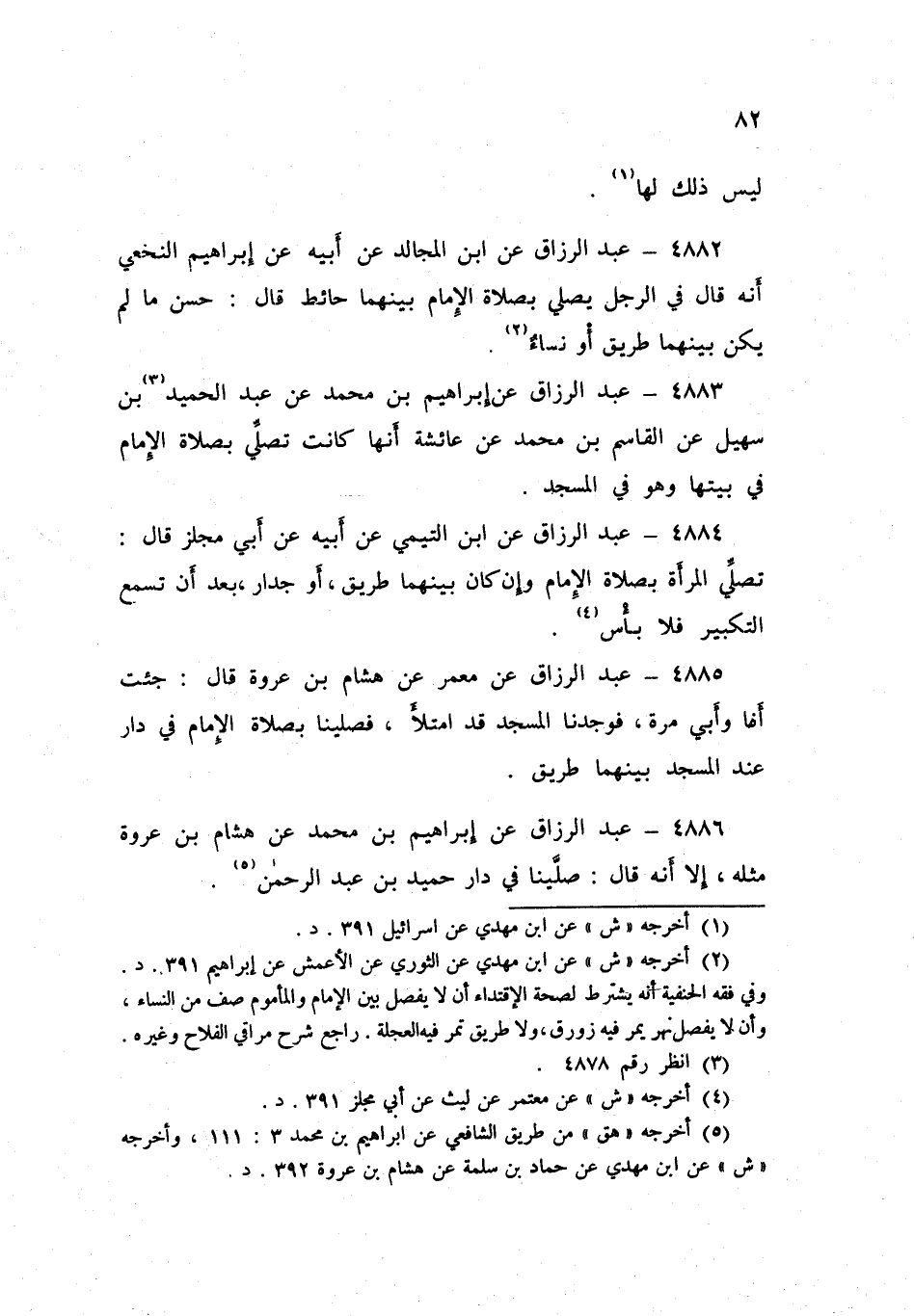4885 - عَنْ مَعْمَرٍ، عَنْ هِشَامِ بْنِ عُرْوَةَ قَالَ: «جِئْتُ أَنَا، وَأَبِي مُرَّةَ، فَوَجَدْنَا الْمَسْجِدَ قَدِ امْتَلَأَ، §فَصَلَّيْنَا بِصَلَاةِ الْإِمَامِ فِي دَارٍ عِنْدَ الْمَسْجِدِ بَيْنَهُمَا طَرِيقٌ» عَبْدُ الرَّزَّاقِ،