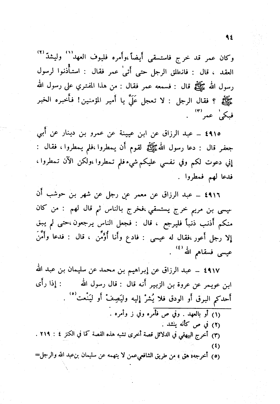 4918 - عَنِ ابْنِ جُرَيْجٍ قَالَ: «حُدِّثْتُ أَنَّ النَّبِيَّ صَلَّى اللهُ عَلَيْهِ وَسَلَّمَ §نَهَى أَنْ يُشَارَ إِلَى الْمَطَرِ»